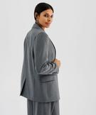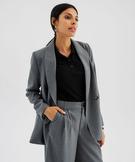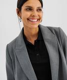 Avec sa fermeture croisée inspirée du vestiaire masculin, cette veste blazer revisite les codes du costume avec une touche de modernité. Son col tailleur cranté, ses épaules marquées et sa coupe droite offrent une silhouette affirmée, subtilement adoucie par des finitions élégantes. Une veste femme à l’allure contemporaine à porter avec un pantalon de tailleur pour un look working girl assumé, ou à décaler avec un jean et des escarpins pour jouer les contrastes. Deux poches à rabat et une doublure intégrale viennent parfaire cette veste à l’élégance androgyne et intemporelle. Fente au dos.
