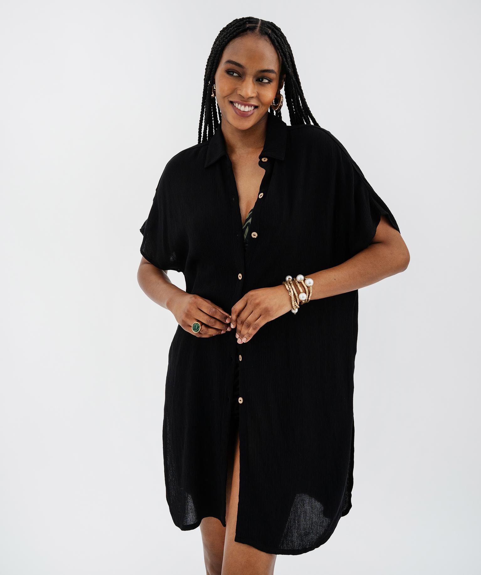 Veste de plage mi-longue à manches courtes femme noir