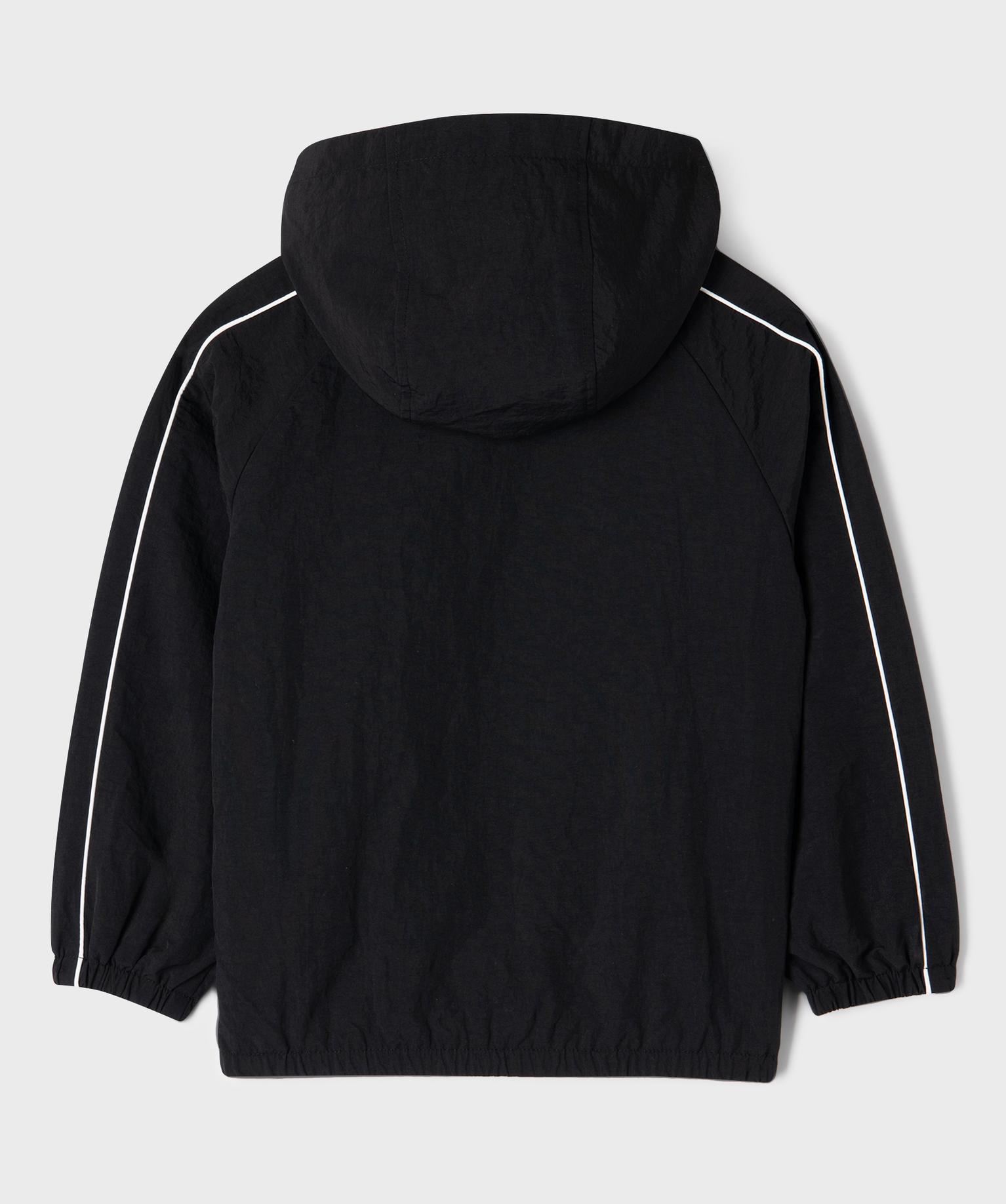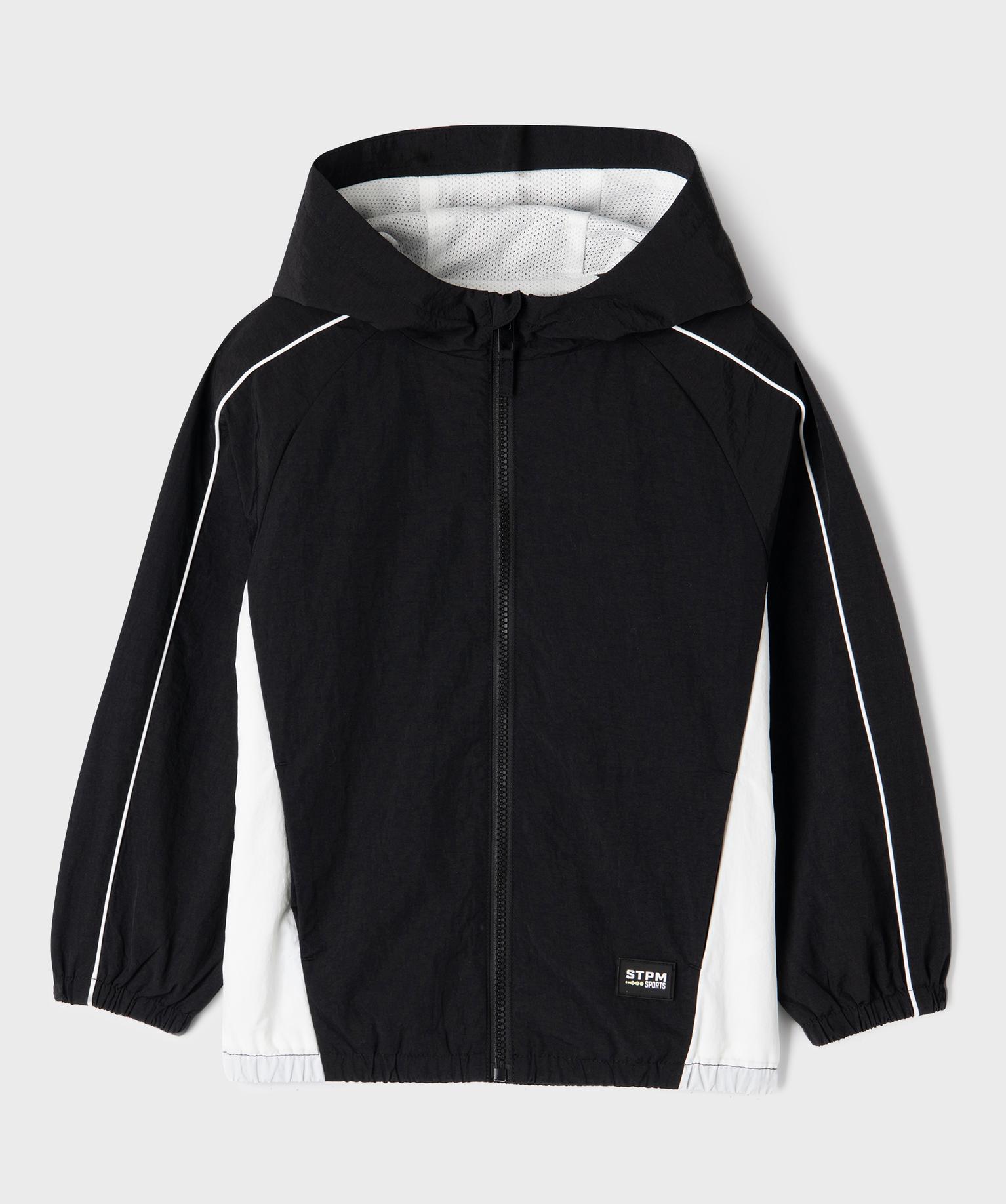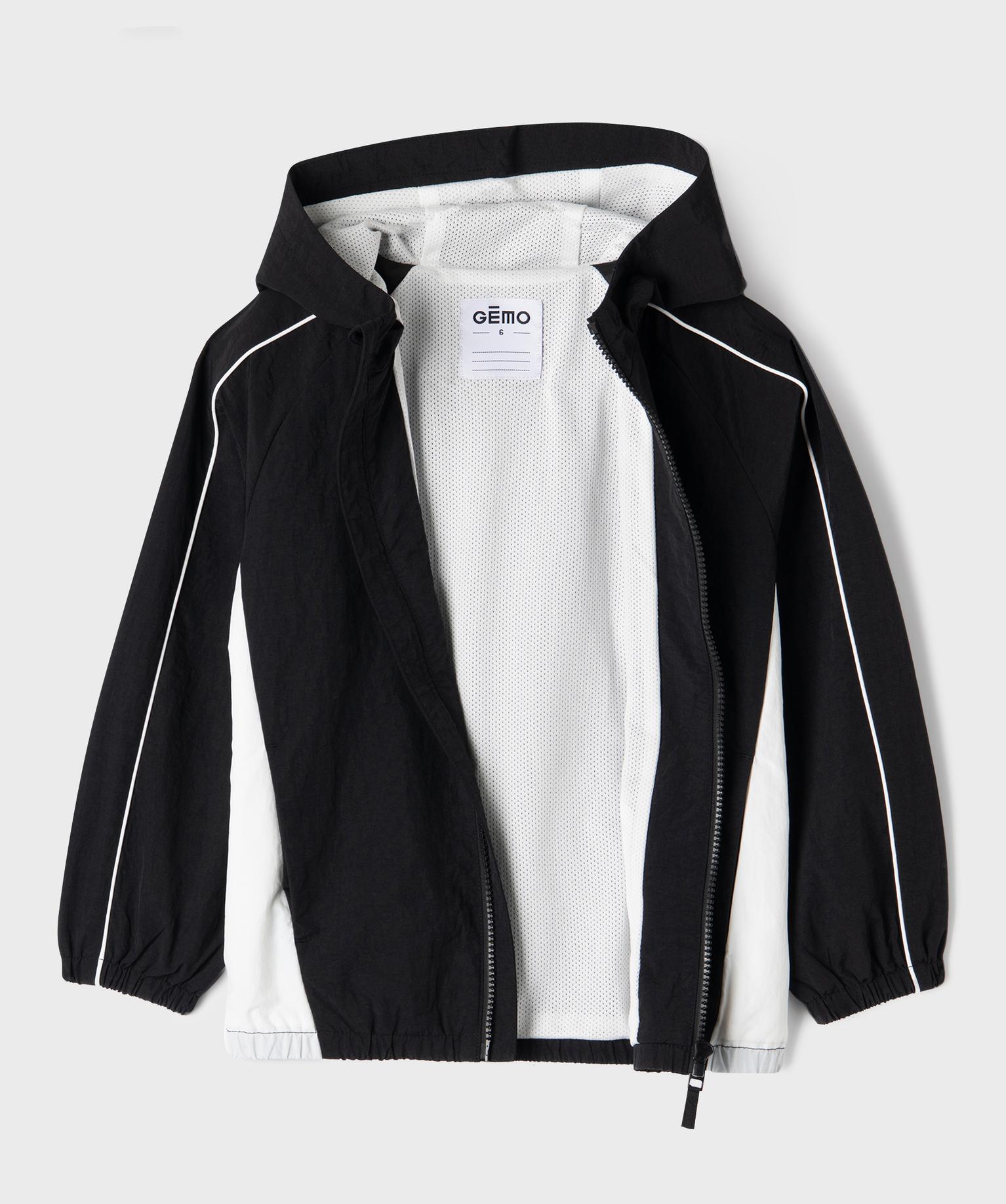 Cette veste de sport a été spécialement pensée pour les garçons actifs. Confectionnée en toile parachute légère et résistante, elle protège efficacement du vent tout en restant agréable à porter. Sa fermeture zippée facilitent l’habillage. Des empiècements contrastants sur les cotés et des liserés sur les manches dynamisent l’allure de cette veste garçon. Idéale pour le sport et les activités en plein air, elle se porte avec un jogging ou avec le pantalon assorti pour un ensemble coordonné. Deux poches dissimulées dans les coutures. Doublure filet. Finitions élastiques aux poignets et dans le bas.
