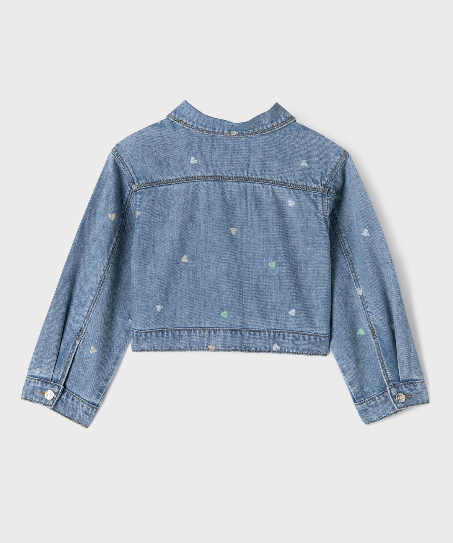 Impossible de résister au charme de cette veste en jean pour fille, courte et pleine de pep’s. Son denim de coton délavé s’illumine d’un imprimé de petits cœurs multicolores, aussi joyeux que tendance. Le col chemise, la fermeture par boutons-pression et les poignets pressionnés reprennent les codes de la veste en jean classique. 2 poches plaquées à la poitrine. Une veste craquante, parfaite pour twister une tenue basique ou accompagner une robe colorée.