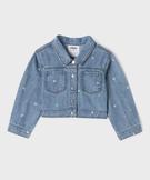 Veste en jean courte imprimée cœurs fille bleu