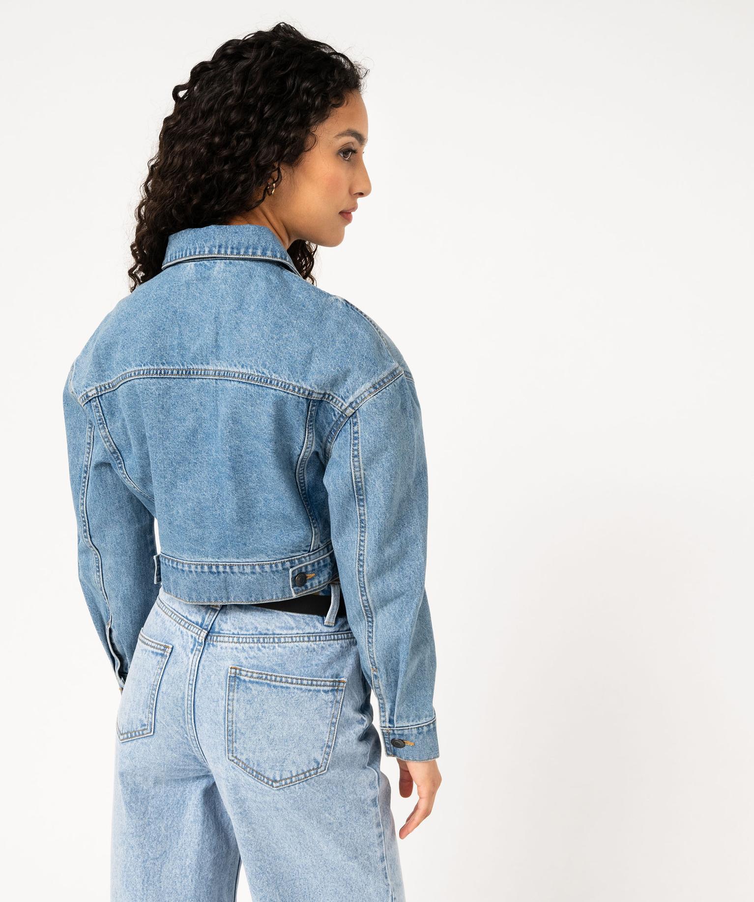 Envie d'ajouter une touche de style décontracté et tendance à votre garde-robe ? Découvrez notre veste en jean femme courte. Fabriquée avec un denim 100% coton, cette veste offre confort, durabilité et style. Son délavage apporte une touche de caractère vintage unique, tandis que sa coupe courte ajoute modernité et audace à vos tenues. Vous la porterez aussi bien avec un jean flare taille haute qu'avec une robe d'été légère pour une allure branchée. Fermeture par boutons. Poignets boutonnés. Poches poitrine à rabat boutonné. Brides boutonnées dans le bas du dos.