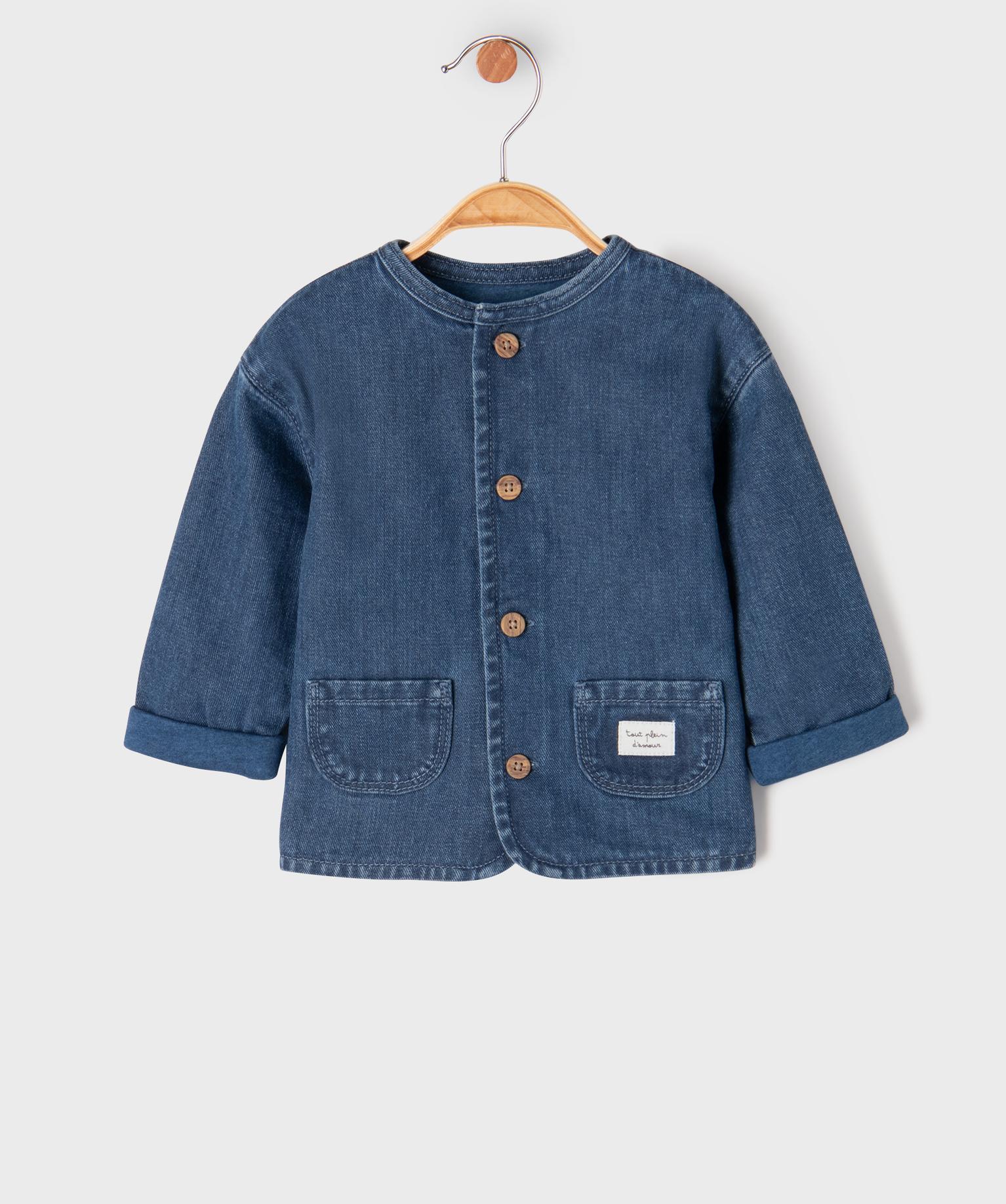 Veste en jean doublée jersey à col rond bébé fille bleu