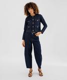 Apportez une touche de caractère à vos tenues avec cette veste en jean femme qui allie élégance couture et esprit décontracté. Sa coupe droite au-dessus des hanches met en valeur la silhouette. Le col rond apporte une note féminine et moderne. Les boutons dorés en métal gravé ajoutent de la sophistication à la veste, tout comme ses poches à rabat (2 vraies et 2 fausses, décoratives à la poitrine. Une veste à superposer sur un tee-shirt ou une blouse légère.