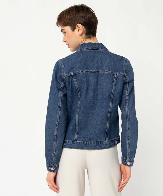 La veste en jean fait partie des essentiels du dressing féminin depuis déjà de nombreuses années. On la porte en mode casual mais aussi pour casser le côté strict d’une robe ou d’un pantalon en toile. Cette veste femme se décline dans une toile fine 100% coton idéale pour la saison estivale, tout en conservant ses surpiqûres si caractéristiques. Elle possède de fausses poches à rabat sur la poitrine et des poches latérales dissimulées dans les coutures. Disponible en plusieurs coloris classiques ou pétillants, cette veste en denim s’accorde avec l’ensemble du vestiaire !