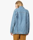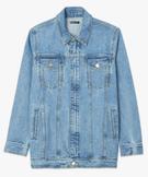 Veste en jean femme coupe longue et fermeture zippée bleu