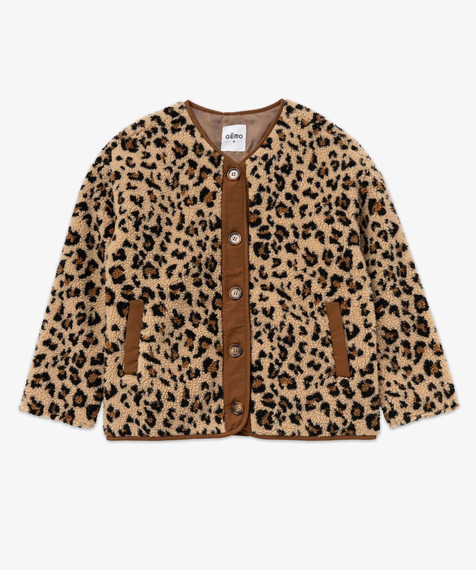 Adoptez la tendance animale et optez pour cette veste femme à motifs tachetés. Confectionnée en sherpa ultra-doux et entièrement doublée, elle offre une allure cocooning irrésistible. Sa coupe oversize, à la fois moderne et volumineuse, se marie parfaitement avec des pantalons ajustés. Cette veste doudoune possède une patte de boutonnage et des poches raglan au coloris uni apportant une touche de contraste.