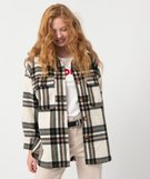 Must-have de la saison, la veste façon chemise. Celle-ci s’affiche dans une version réconfortante grâce à sa matière aspect flanelle et sa coupe ample. Une veste à carreaux dotée de deux larges poches à rabat et fermée par de gros boutons sur l’avant. Cette veste femme réchauffera tous les looks casual de la saison, elle sera parfaite avec un jean, un pull col roulé et des boots. Bas arrondi fendu sur les côtés.