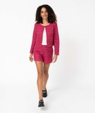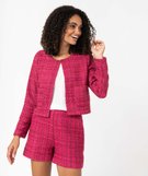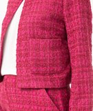 Ajoutez une touche « couture » à vos looks grâce à cette veste courte confectionnée dans une matière aspect tweed. Une veste femme juste fermée par un crochet au niveau du col rond et agrémentée de deux poches plaquées. Cette veste sera la meilleure alliée d’une robe droite ou d’un pantalon de tailleur, mais elle apportera également une belle touche d’élégance à un simple jean.