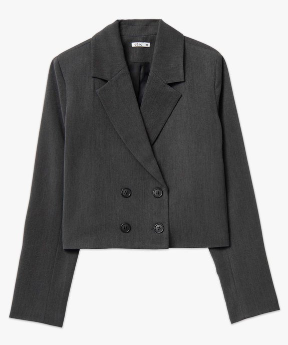 Gémo revisite la veste blazer dans une version courte originale. Une veste de tailleur avec grand col et fermeture croisée qui apportera une touche d’élégance à toutes vos tenues. Cette veste femme, entièrement doublée, possède de fines épaulettes et une coupe droite. Elle se porte sur un pantalon de smoking taille haute ou pour apporter la touche finale à une robe de soirée. Fermeture deux boutons. Légèrement plus longue sur l'avant.