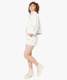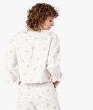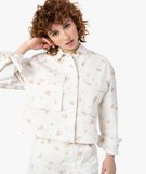 Une jolie veste en toile de coton qui nous séduit par ses motifs fleuris déclinés dans des coloris pastel et par sa coupe ample et courte totalement tendance. Une veste femme inspirée de la veste en jean, avec fermeture par boutons sur l’avant et aux poignets et deux grandes poches à rabat boutonné. Cette veste courte oversize s’accordera parfaitement avec vos jeans slim, ou avec le short assorti pour un total look fleuri. Pli plat dans le dos.