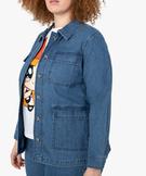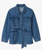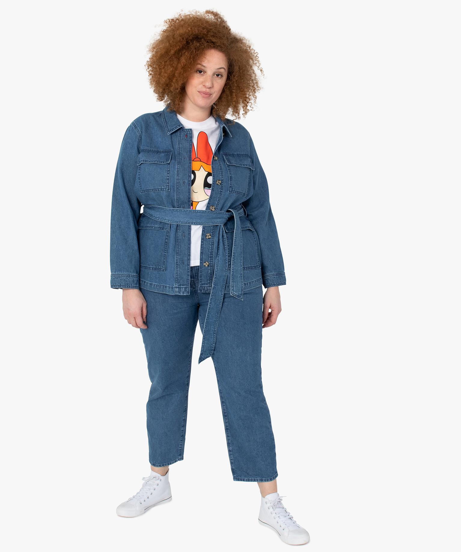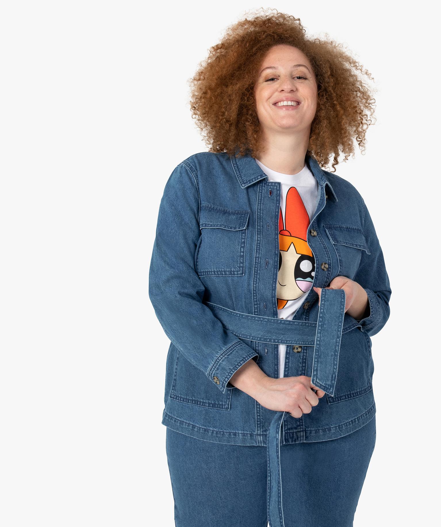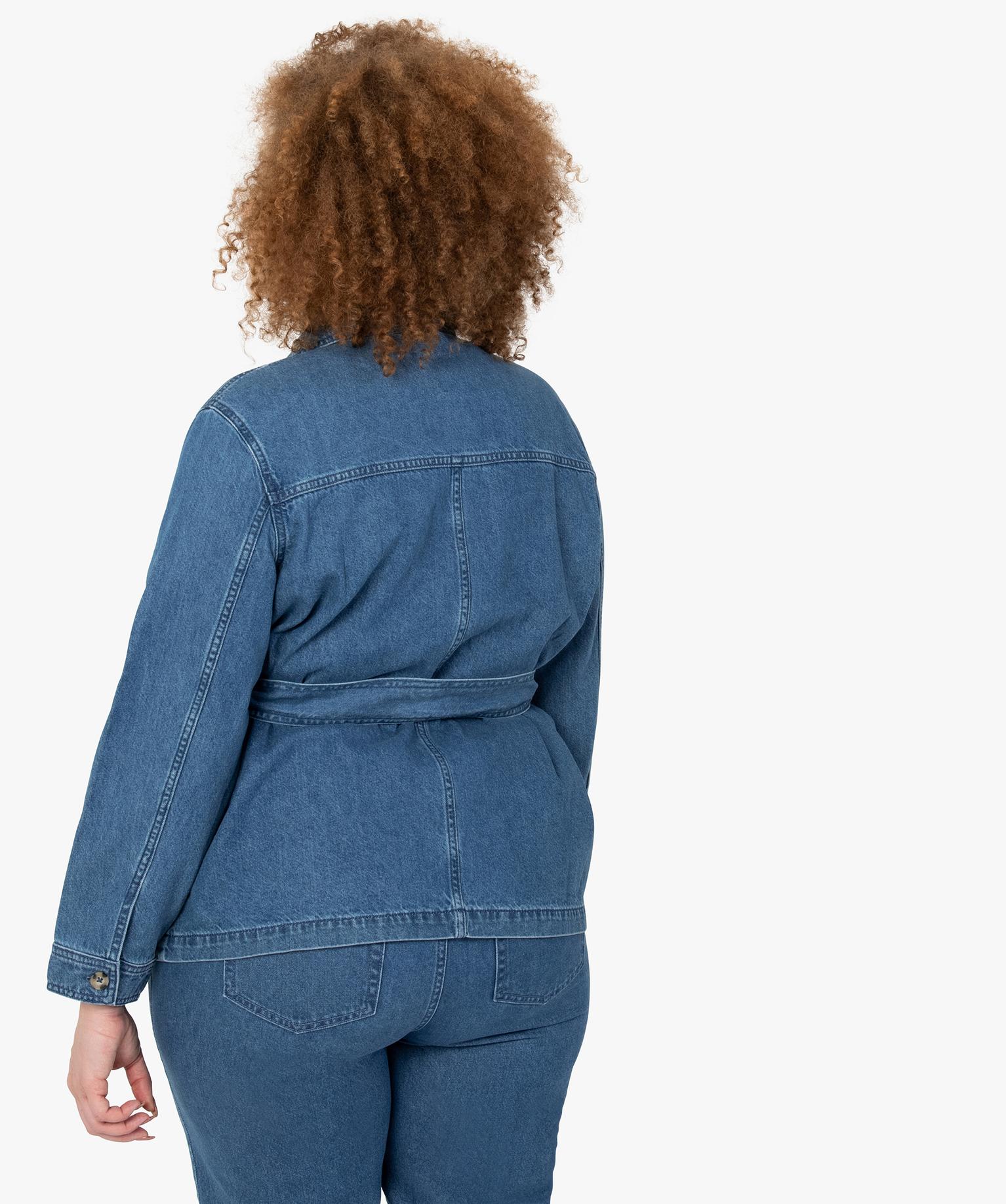 Veste femme grande taille en jean coupe saharienne bleu clair