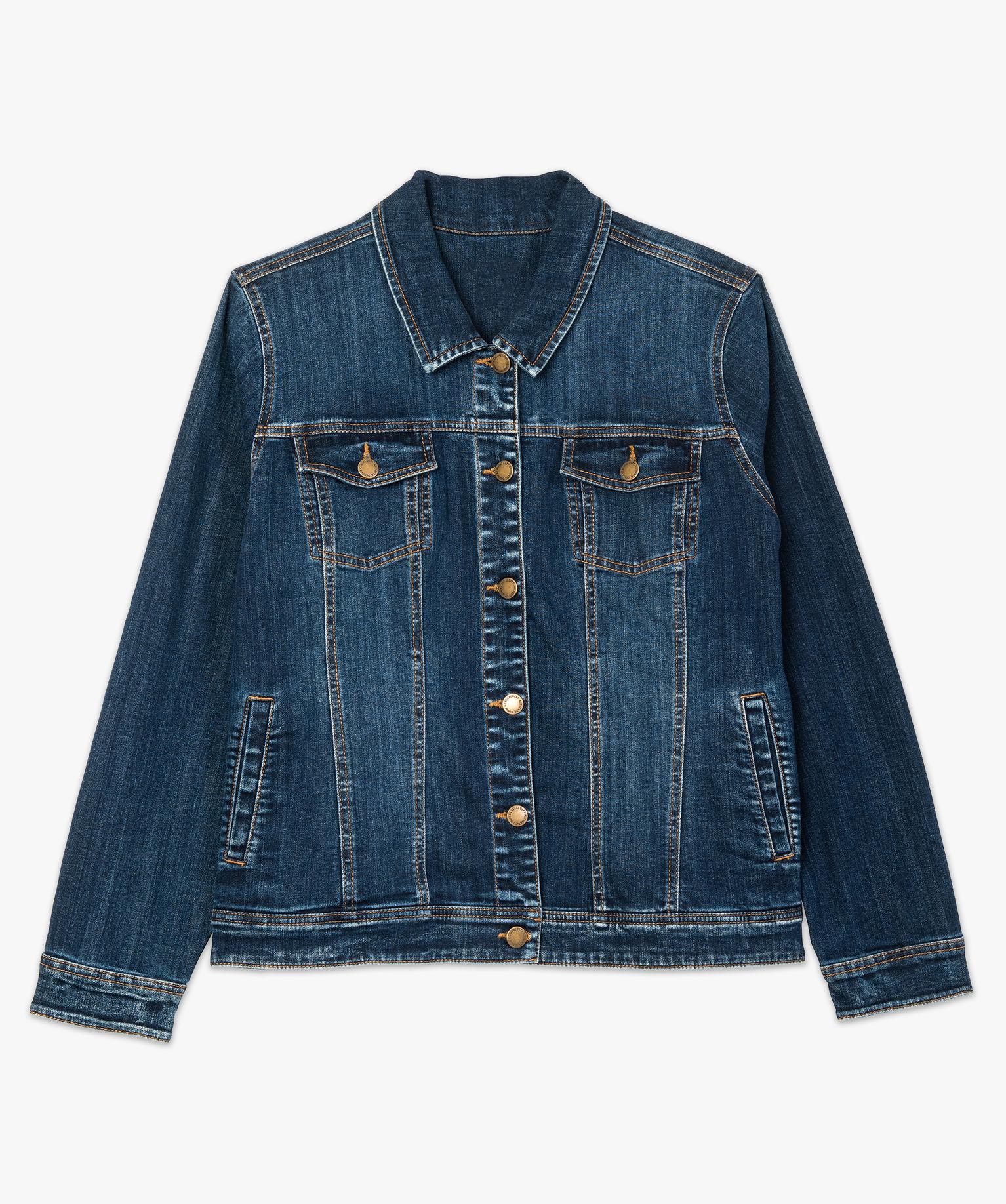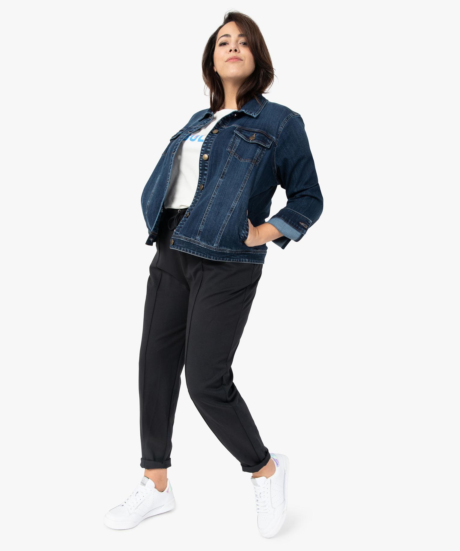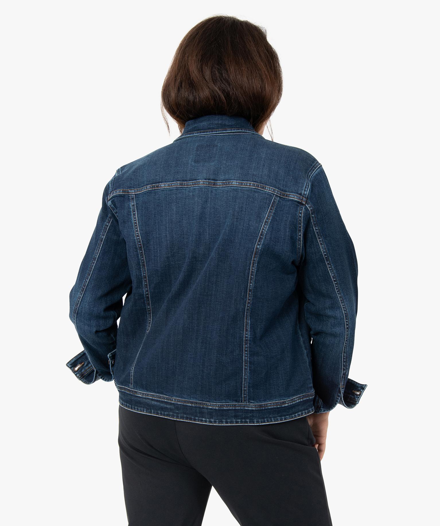 L'indémodable veste en jean est à retrouver dans notre collection grande taille pour femme dans une version coton stretch, pour plus de confort au quotidien ! Vous apprécierez sa coupe trapèze pour un tombé impeccable aux hanches. Son coloris brut, légèrement délavé, et ses surpiqûres contrastantes lui donnent un look authentique. La veste pour femme grande taille (du 48 au 56) se ferme par de gros boutons en métal vieilli. Fidèle aux codes, ce modèle possède deux poches poitrine à rabat boutonné, deux poches raglan, des poignets boutonnés et un col chemise. Ce blouson en jean se porte aussi bien avec une robe fleurie qu'avec un tee-shirt à message.