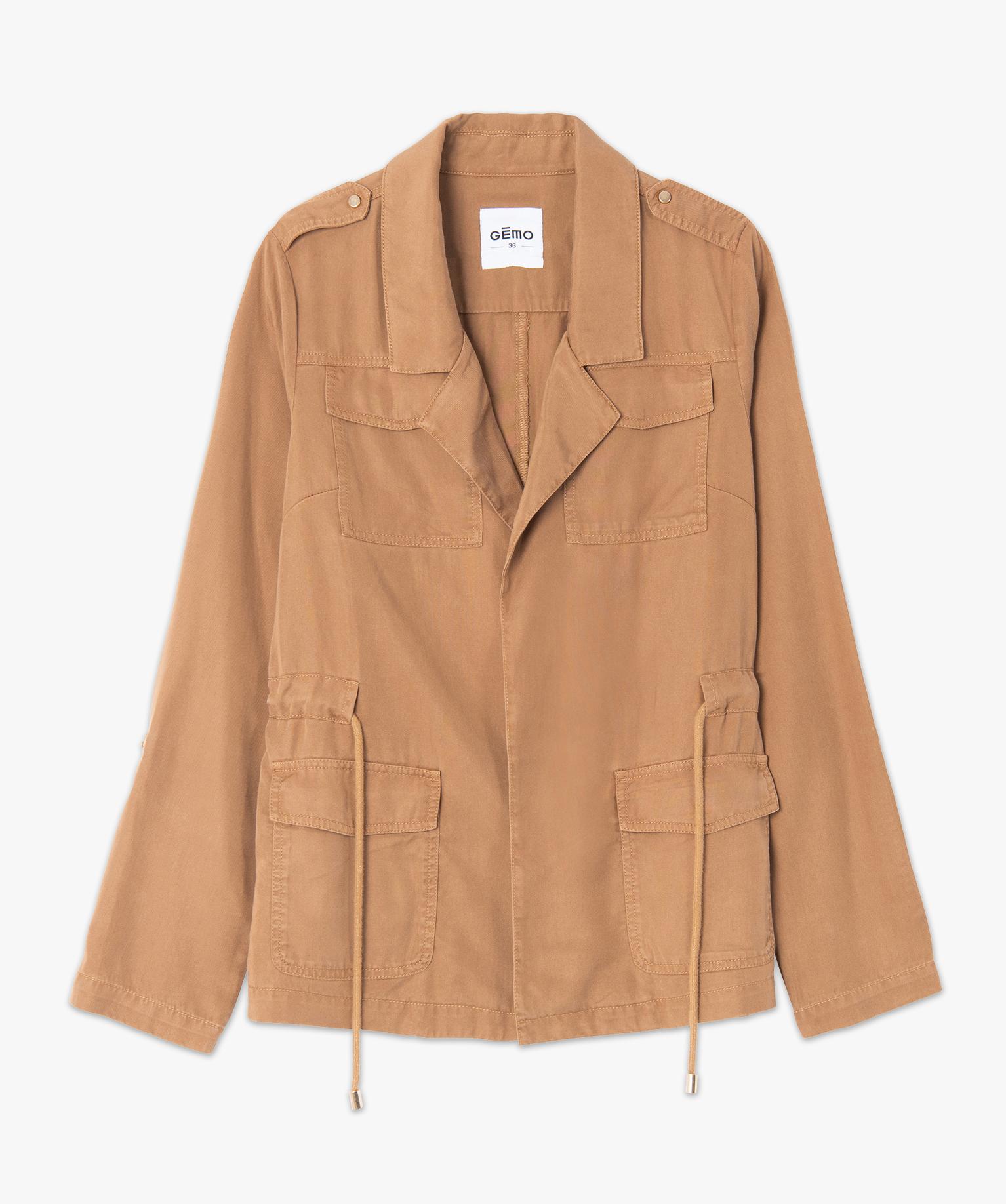On aime le style décontracté de la veste saharienne pour femme. Idéale à la mi-saison, elle apporte une douce chaleur. Cette veste est confectionnée en Lyocell, une matière naturelle issue de forêts gérées durablement, elle offre une bonne circulation de l’air et une bonne régulation de la température. Cette veste saharienne respecte les codes du genre avec ses 4 poches à rabat, ses pattes avec boutons métalliques sur les épaules, ses manches retroussables et sa taille ajustable par cordon.