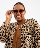 Cette veste en sherpa transformera n’importe quel look en tenue ultra mode avec son imprimé au top de la tendance ! Une veste femme grande taille (du 46 au 54) avec encolure ronde et fermeture par de gros boutons aspect écaille. Cette veste est entièrement doublée pour offrir plus de confort et possède deux poches raglan avec biais contrastants. Cette veste imprimée se porte en version décontractée avec un jean et un pull, ou en mode chic avec une longue robe unie.