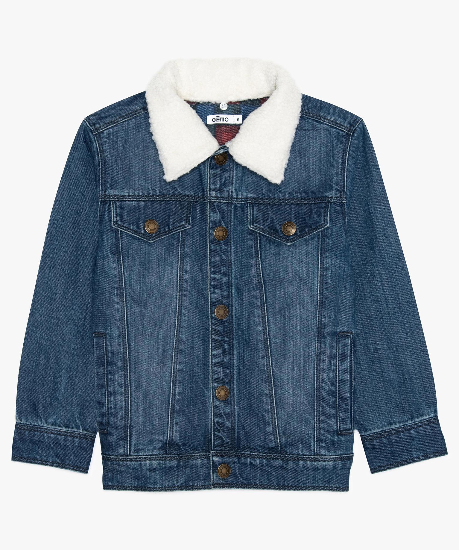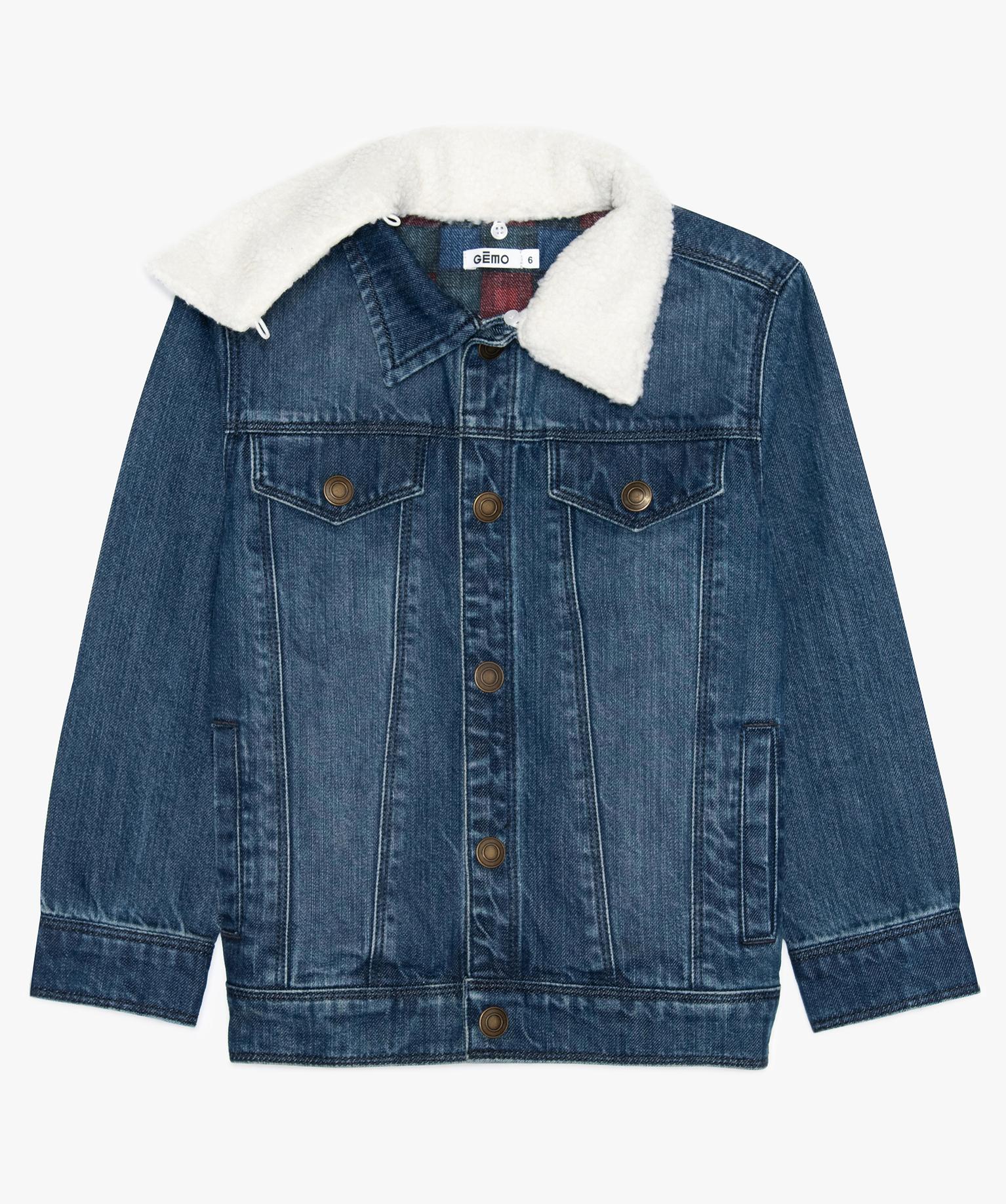 Veste jean garçon avec col amovible bleu vif