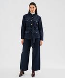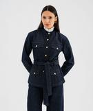 Veste longue en toile denim avec ceinture femme bleu fonce