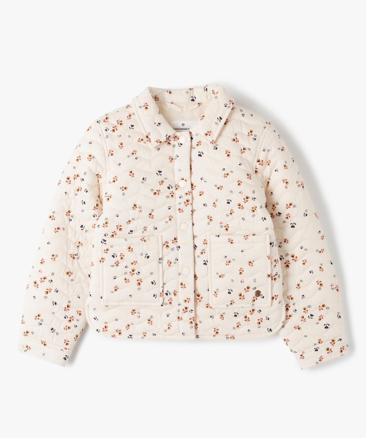 Veste matelassée à motifs fleuris fille - LuluCastagnette blanc chine