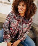 Faites vibrer votre dressing avec cette superbe veste matelassée et imprimée. On aime sa coupe courte et droite, et son motif all over. La veste pour femme grande taille (du 46 au 54) se ferme à l'aide de gros boutons en écaille imitation. Elle est pourvue d'un élégant col mao, de 2 poches plaquées, d'une finition biais ton sur ton et d'une doublure unie assortie.