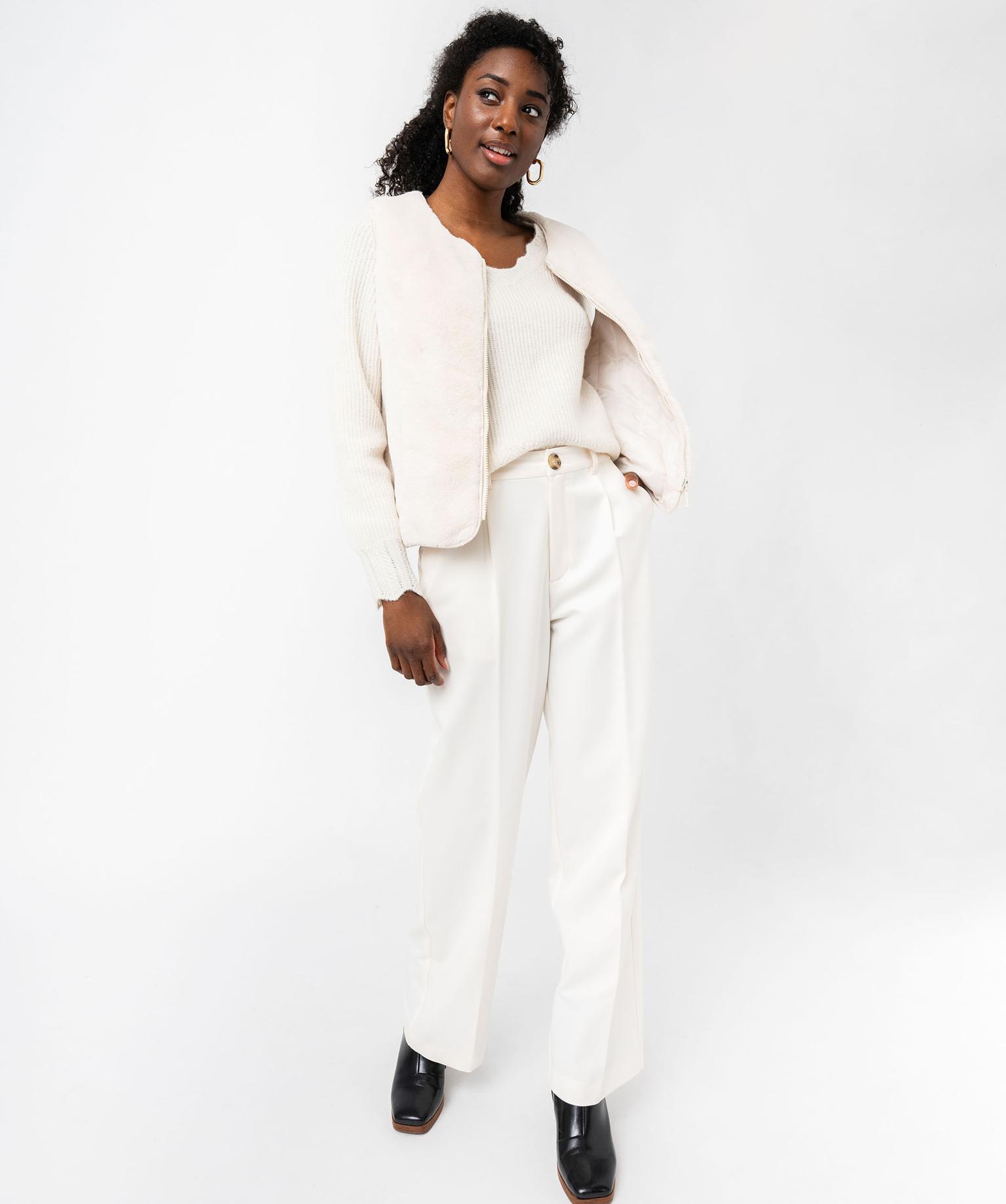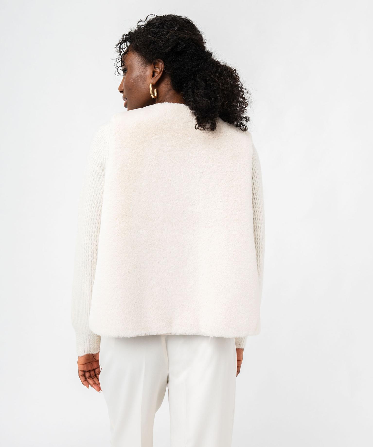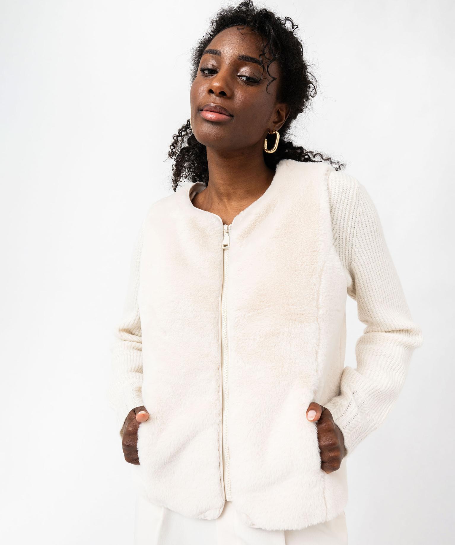 Vous allez tomber sous le charme de cette veste sans manches pour femme. Confectionnée dans une maille peluche ultra douce, elle ajoute une touche cocooning à toutes les tenues de la saison. Dans la tendance éco-responsable, cette veste doudoune peluche possède un rembourrage en polyester recyclé chaud et confortable. Elle se ferme à l’aide d’un zip et possède deux poches invisibles sur l’avant. Un gilet sans manches à porter sur un pull ou une chemise, avec un jean et des boots. Finitions biais passepoilés sur le col et aux emmanchures.