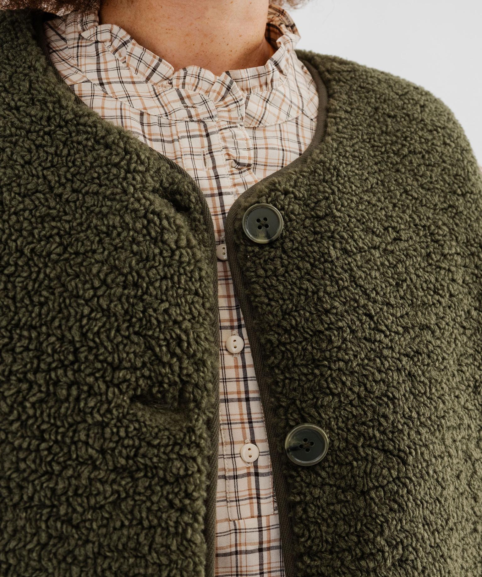 Veste sans manches en sherpa femme grande taille[MISSING] kaki