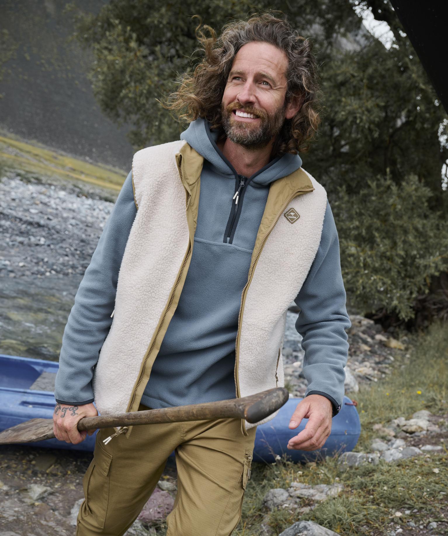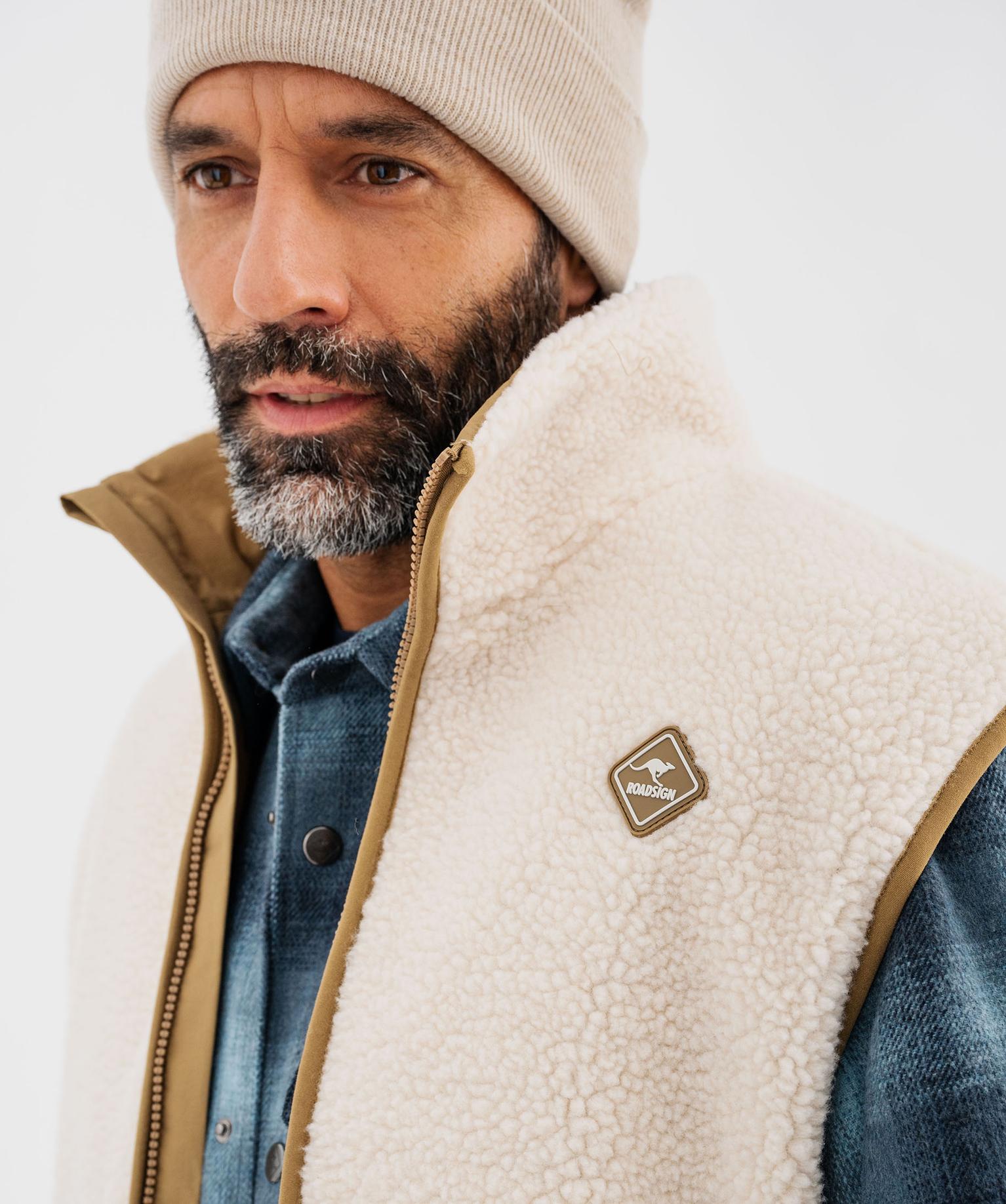 Alliez liberté de mouvement et style affirmé avec cette veste sans manches signée Roadsign. Parfait compromis entre veste légère et gilet sport, elle est idéale pour réchauffer les looks décontractés lors des journées fraîches. Une veste réversible confectionnée en toile technique façon parachute d'un côté et en maille sherpa de l'autre, qui permet de changer de style au gré de vos envies. Doté de finitions biais élastiques sur l'ourlet et les emmanchures, ce sweat zippé pour homme offre une grande aisance de mouvement et un maximum de confort. Il se ferme facilement à l’aide d’un zip avec tirette. Deux poches sur chaque face et une poche zippée.