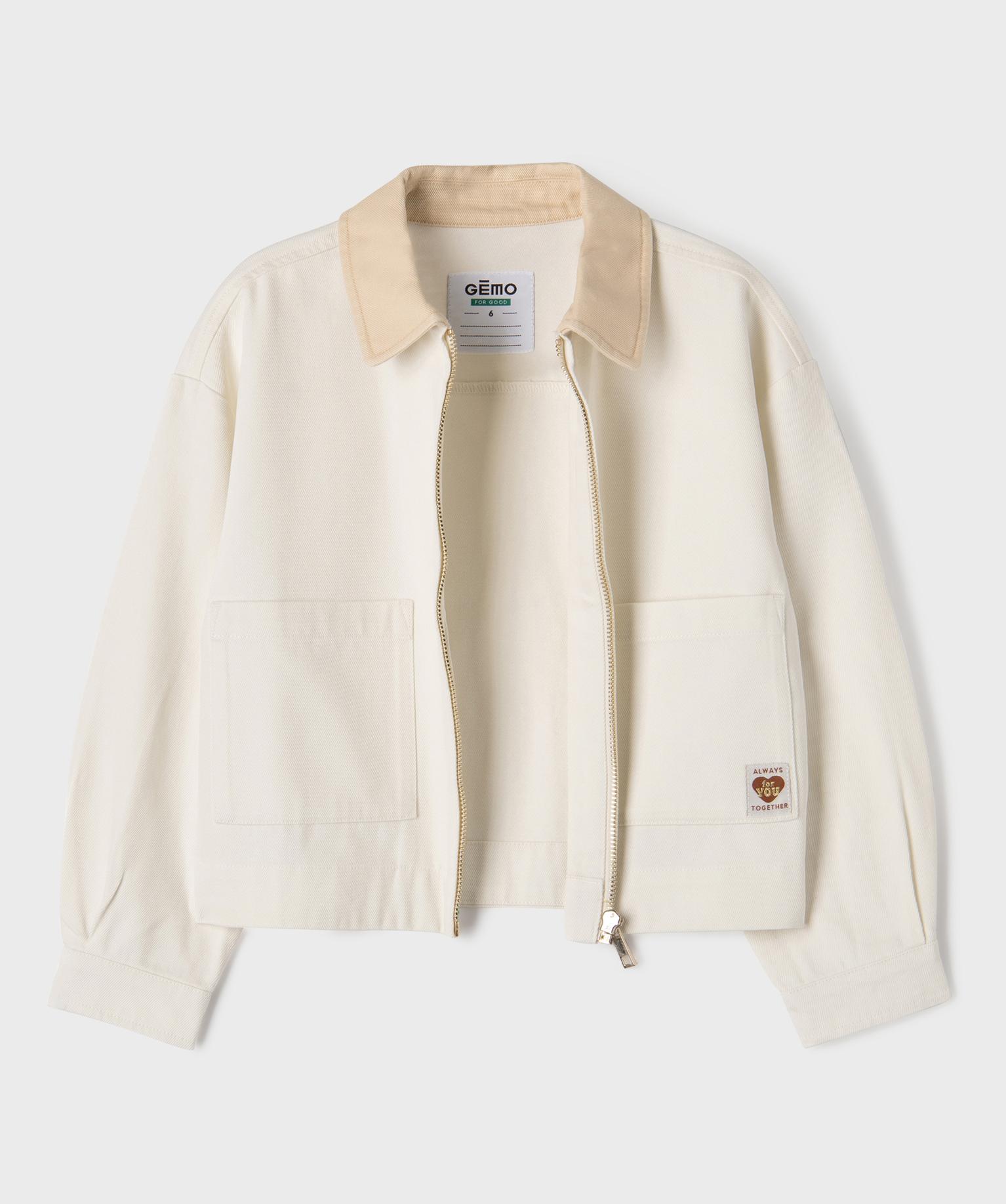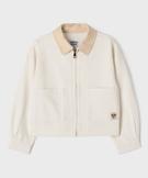 Cette veste fille revisite l’esprit workwear avec modernité. Sa coupe courte et large, son col chemise contrastant et ses grandes poches plaquées lui donnent un look affirmé. 100% coton, cette veste en toile est à la fois résistante et confortable. Détails soignés : poignets à boutons-pression dorés, fermeture zippée et petite étiquette pailletée brodée sur la poche. À porter ouverte sur un tee-shirt imprimé ou fermée façon surchemise.