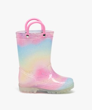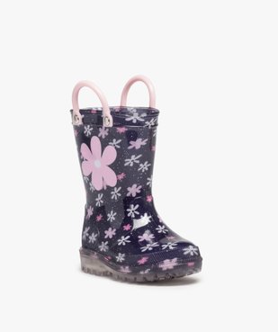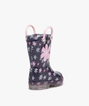 Bottes de pluie bébé fille à anses et semelle lumineuse motif fleuri