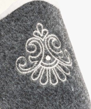 Chaussons femme mules confort en velours ras brodé et à semelle compensée