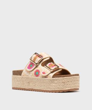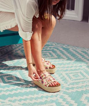 Sandales à brides fantaisie et talon compensé texturé femme - Hobiz