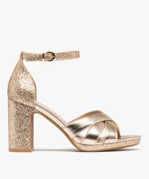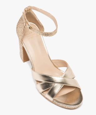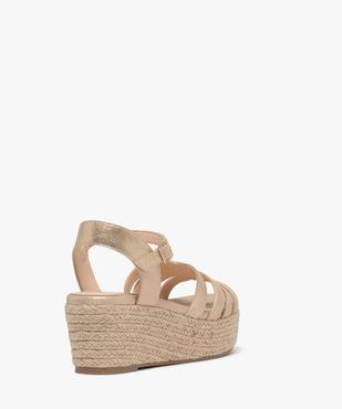 Sandales femme à talon compensé en cuir avec brides ajourées effet métallisé