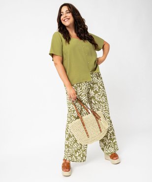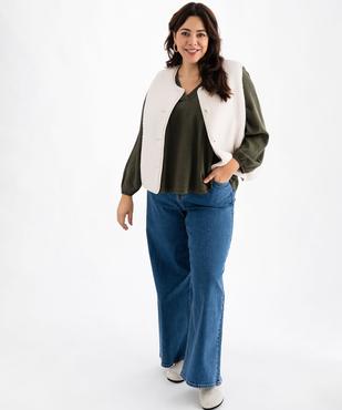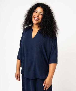 Indispensables dans un dressing, les tuniques, blouses et chemisiers pour femme grande taille apportent une véritable note féminine à votre tenue en toutes circonstances. Pour le bureau, l’uni et les fines rayures verticales sont des valeurs sûres. Un top avec une légère brillance se marie également à un blazer sobre. Côté matière, vous pouvez compter sur le coton qui se maintient toujours très bien. Et côté couleurs, le blanc, le gris et le noir sont de grands classiques. Les couleurs raffinées et profondes, comme le bleu nuit, le marine, le pourpre sont également à privilégier.