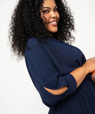 Bien choisis, la tunique et le chemisier femme grande taille aident à valoriser vos généreux atouts. La blouse n’a pas son pareil pour un effet blousant et masquer un petit ventre. Contrairement aux idées reçues, n’hésitez pas à miser sur un motif, mais en all over et bien proportionné. Et associez la blouse à un bas ajusté pour équilibrer la silhouette. Les femmes à la poitrine et aux hanches généreuses préféreront la tunique, longue et fluide. Accentuez cette hauteur avec une jupe crayon ou un jegging et des sandales à hauts talons. Vous avez la chance d’avoir une taille marquée ? Succombez aux chemises cintrées et aux tuniques ceinturées.
