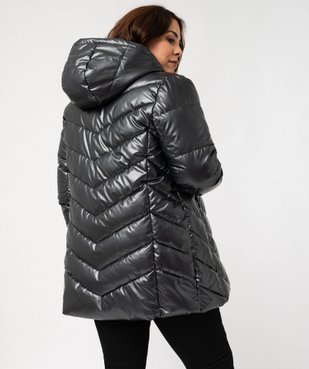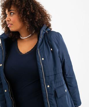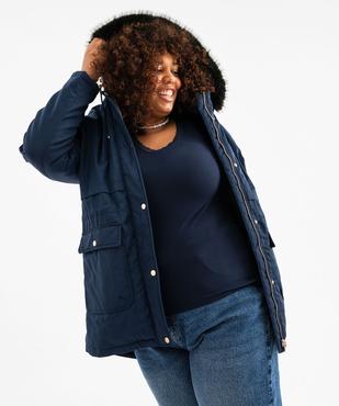 Manteau mi-long zippé à capuche fourrée femme grande taille