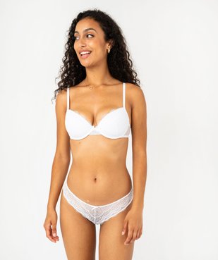 Culotte échancrée en dentelle et microfibre fleurie femme