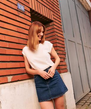 Vêtements femme intemporel, la jupe en jean courte ou longue s'invite dans la sélection de vêtements femme Gémo.