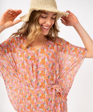 Robe de plage courte en viscose à encolure V et découpes côtés femme