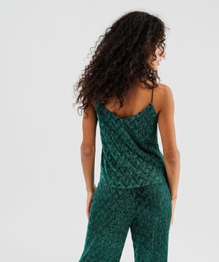 Tee-shirt manches courtes en maille côtelée métallisée femme