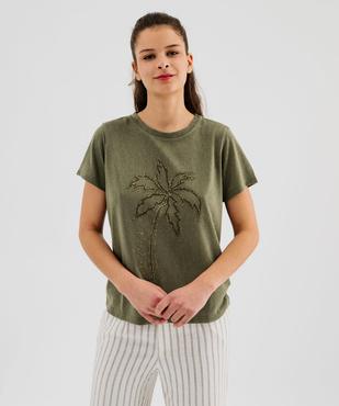 Tee-shirt manches courtes avec col rond fantaisie femme