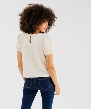 Tee-shirt manches courtes en maille à col fantaisie femme
