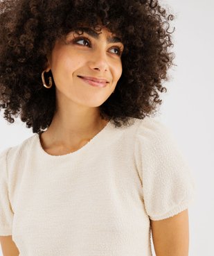 Tee-shirt manches courtes et col rond en maille côtelée femme