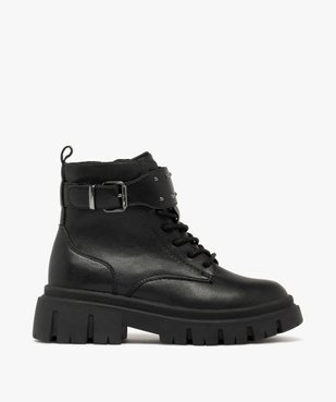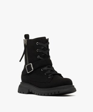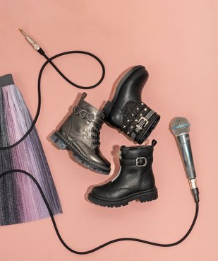 Boots fille fourrées à lacets et zip avec bride à clous métallisés et semelle chunky