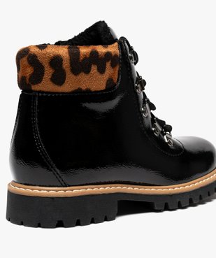 Boots fille fourrées et vernies avec col suédé léopard et à semelle crantée