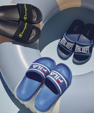 Mules de piscine garçon avec bandeau rayé tricolore - Champion USA