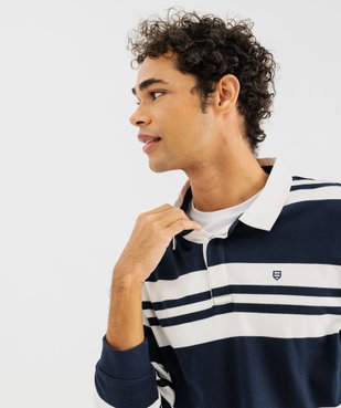 Tee-shirt manches longues en coton piqué avec col tunisien homme