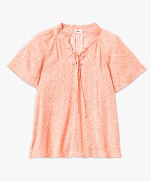 Blouse grande taille à manches courtes et broderies ethniques femme