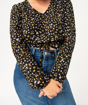 Blouse femme à bretelles volantés et coupe courte à smocks