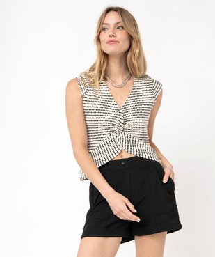 Débardeur en maille froissée et pailletée à fines bretelles femme