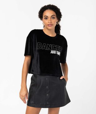 Tee-shirt manches courtes coupe large à strass femme grande taille